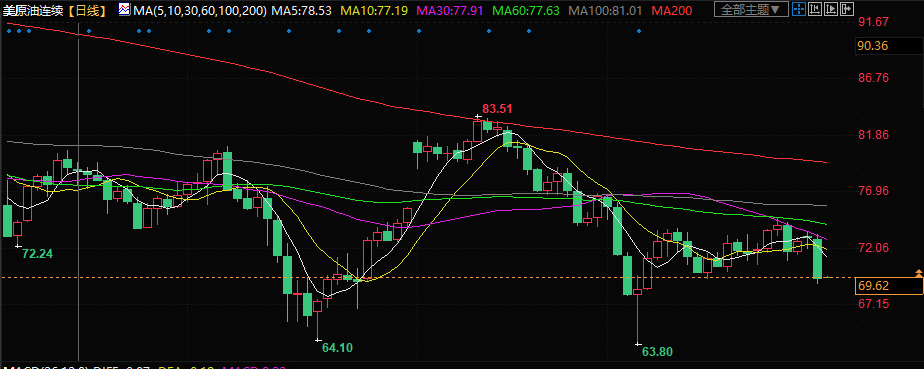 美原油交投于69.61美元/桶附近;油价周二大跌近5%,为5月2日以来最大单日跌幅,因市场担心美国国会是否会通过美国债务上限协议,以及主要产油国发出的相互矛盾的信息,在本周末OPEC+会议前令供应前景蒙阴。