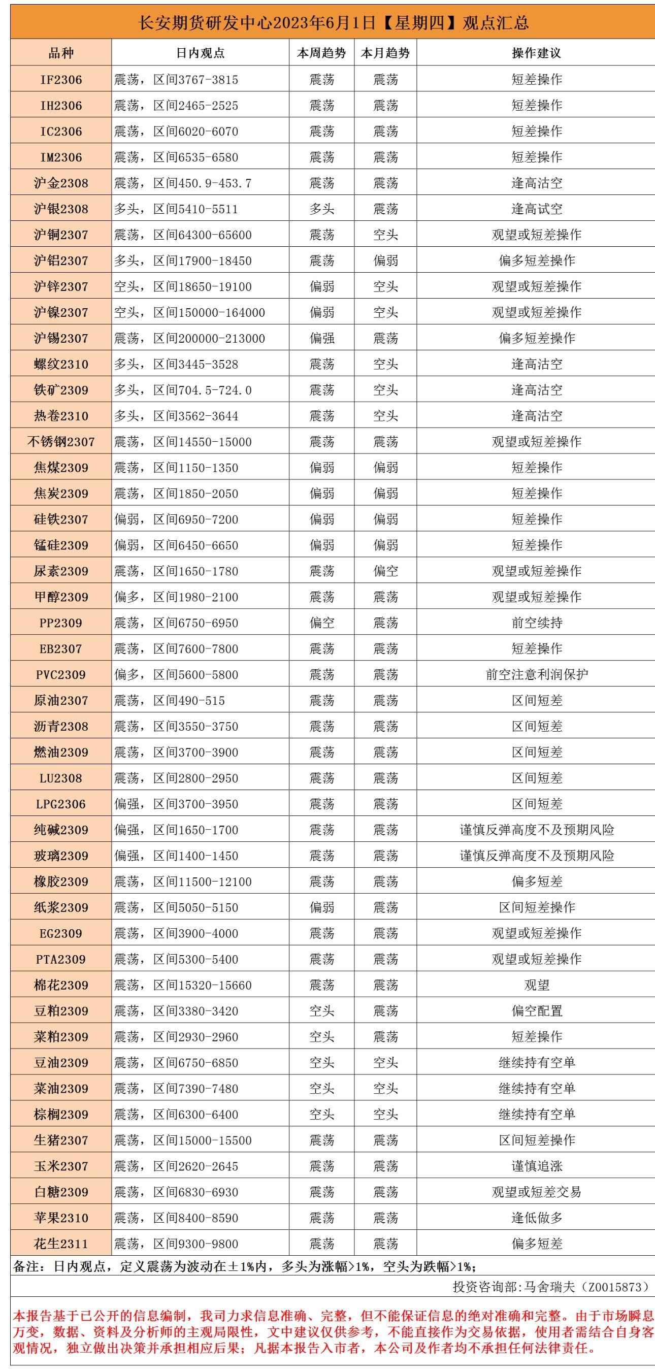 标题:长安期货6月1日早间看盘