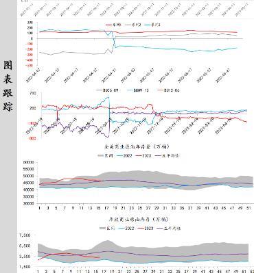 供应端:据美国能源信息署最新数据显示,截止2023年5月19日当周,包括战略储备在内的美国原油库存总量81312万桶,比前一周下降1409万桶;美国商业原油库存45517万桶,比前一周下降1245万桶;战略原油库存量35795万桶,比上一周下降164万桶;美国汽油库存总量21682万桶,比前一周下降151万桶。商业原油库存比去年同期高8.42%,比过去五年同期低3.04%;汽油库存比去年同期低1.56%,比过去五年同期低约7.52%;馏分油库存比去年同期低1.17%,比过去五年同期低17.22%。
