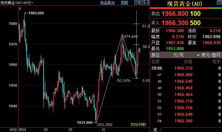 现货黄金上浮0.20%至1966.49美元/盎司;COMEX期金主力合约上浮0.08%至1983.6美元/盎司;