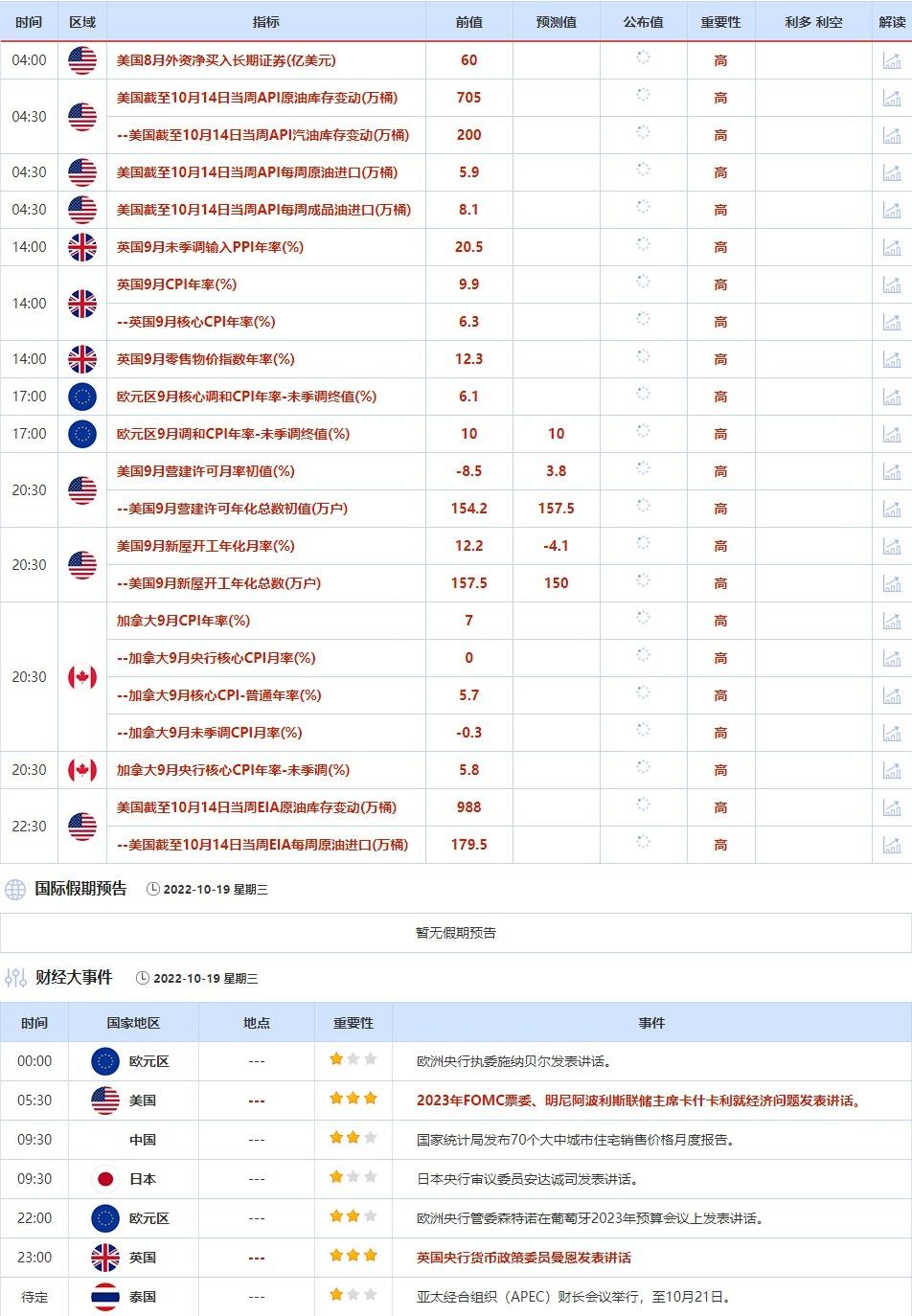 10月19日,英国将公布9月CPI数据,在能源价格高企的情况下料继续维持高位。