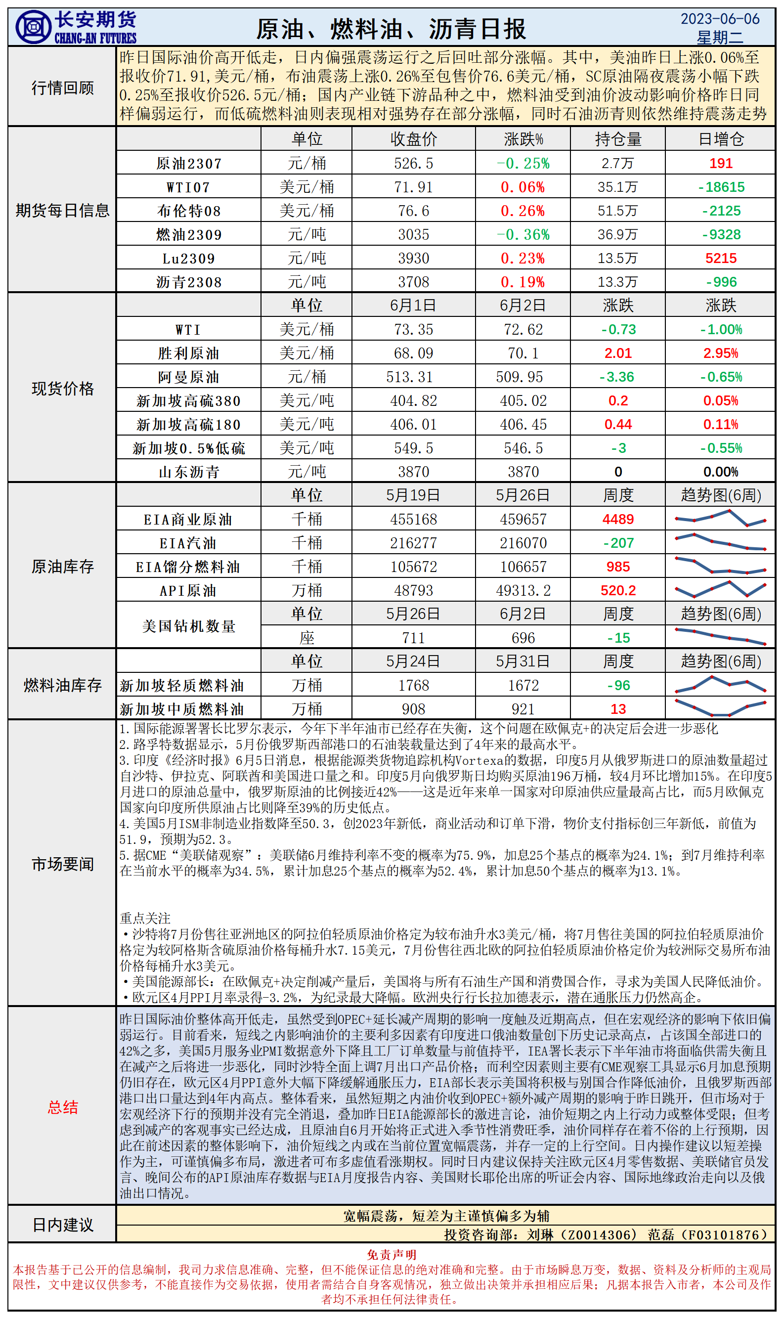 标题:长安期货6月6日原油日报:油价高开低走宽幅运行,日内关注EIA月度报告指引