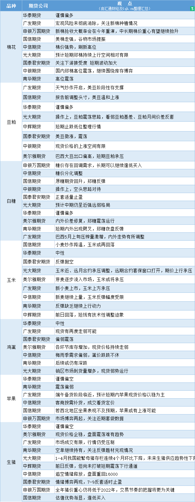 标题:期货公司观点汇总一张图:6月7日农产品(棉花、豆粕、白糖、玉米、鸡蛋、生猪等)