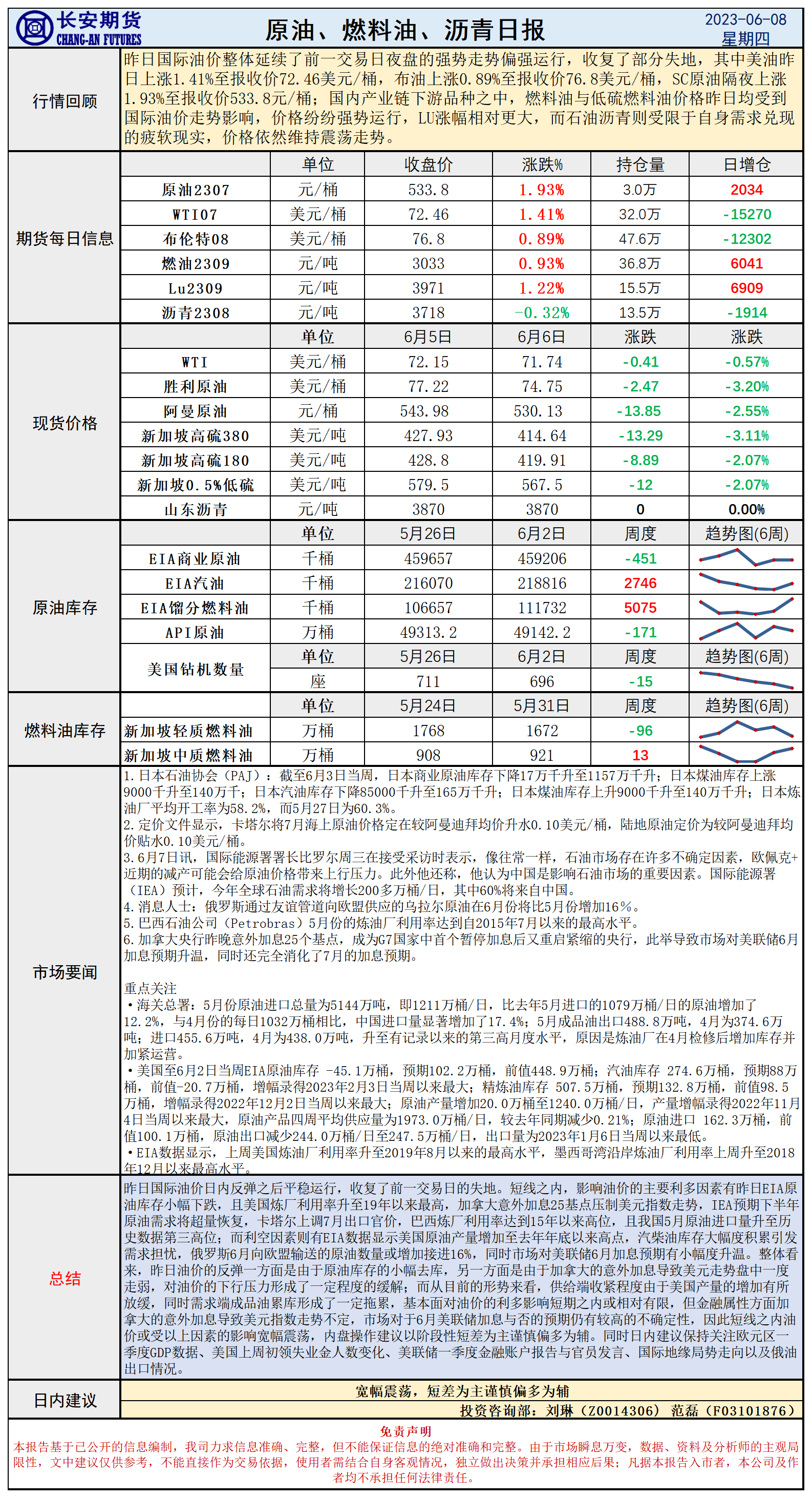 标题:长安期货6月8日原油日报:库存再降美元走弱,油价反弹后或维持震荡