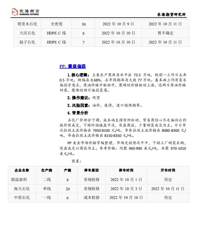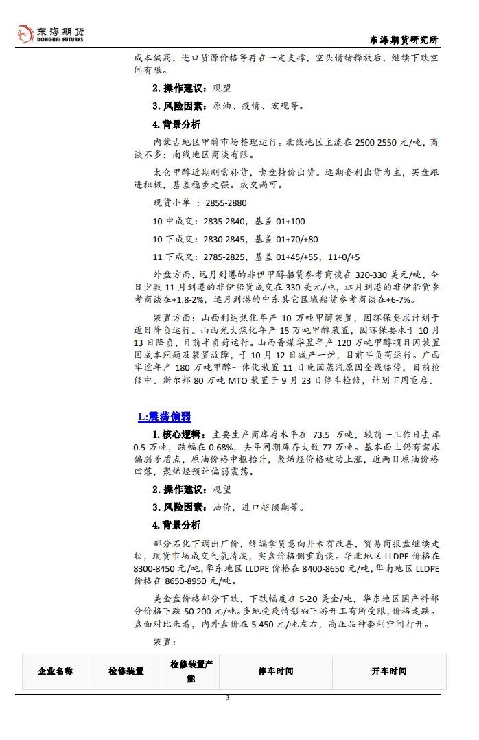 【东海期货10月14日产业链日报】能化篇:CPI靴子落地,风险资产收复部分失地