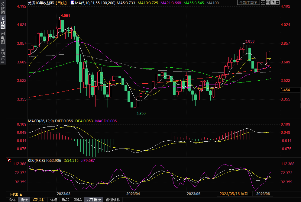 通常追随利率预期的两年期美债收益率周三上升4.8个基点,至4.573%,10年期美债收益率周三上升9个基点,至3.787%,为逾一周最高收盘价,周三涨幅为近一个月最大单周涨幅。