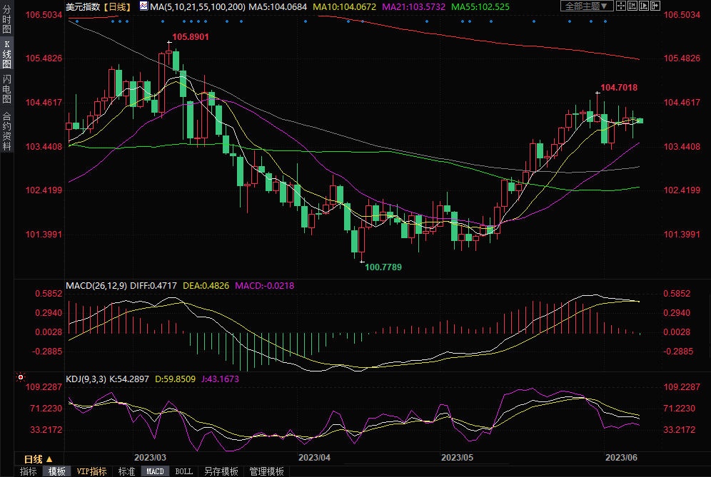 美元指数维持高位震荡走势,投资者在等待下周的美国5月通胀数据和美联储利率决定。