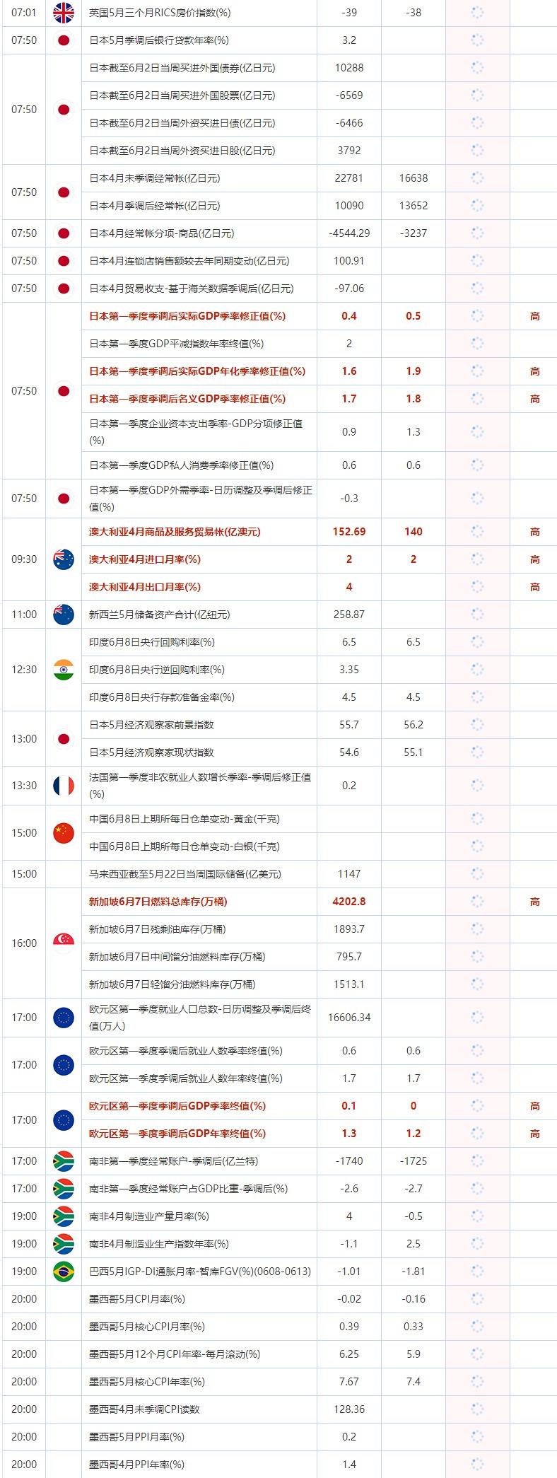 标题:6月8日重点数据和大事件前瞻