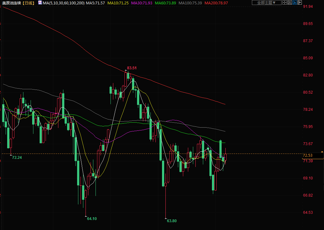 布伦特原油期货收高0.9%,结算价报每桶76.95美元,美国原油期货上涨1.1%,报72.53美元。