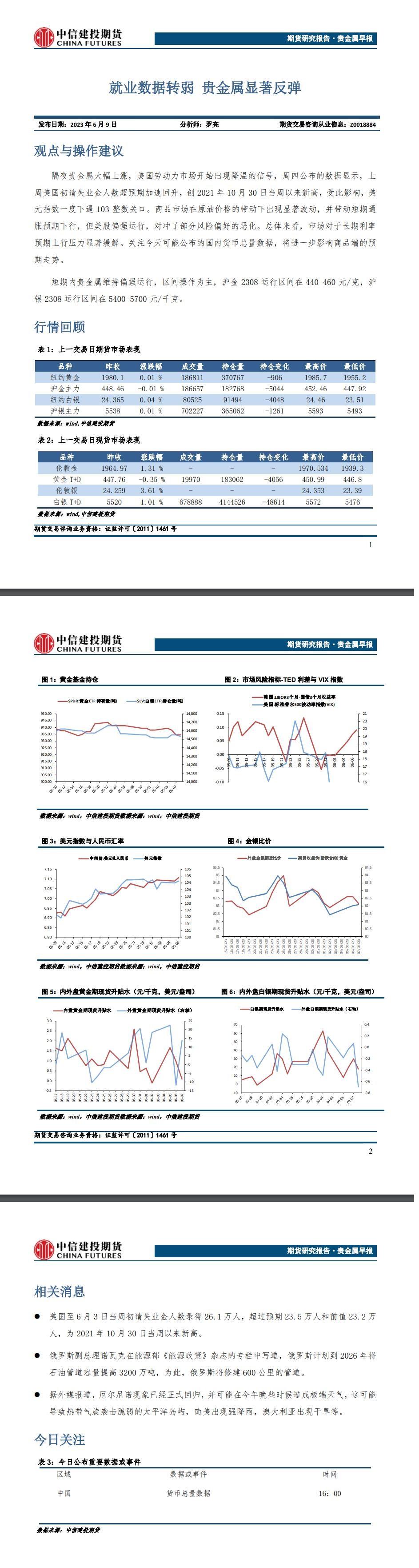标题:中信建投期货6月9日贵金属日报:就业数据转弱,贵金属显著反弹
