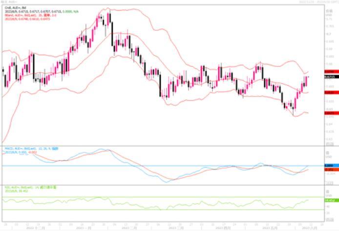 澳元兑美元大幅回升0.92%,收盘于0.6713水平。美国初请失业金人数的骤然增加,在隔夜外汇市场上打击美元,澳元也是借机强力回升。而近期澳联储在货币政策转变未鹰派的表态,也是助力澳元的回升。澳洲三年期公债收益率达到11年高点3.857%,本周迄今上涨40个基点。10年期公债收益率攀升至3.984%的五个月高点。澳洲公债的表现似乎预示着澳元利率仍有调升的空间。虽然加息的大门是敞开的,但鉴于当前全球经济发展的举步维艰的局面,仍然很难评估澳联储会否继续连续加息。因此,对于澳元的走升还是不能抱太乐观情绪。在日线图上,
