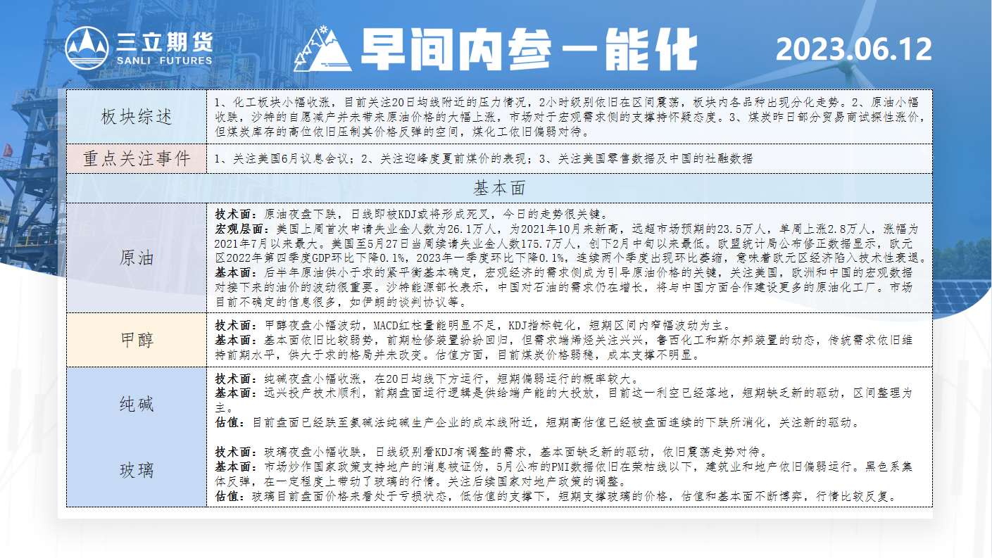 标题:三立期货6月12日早间内参——能化