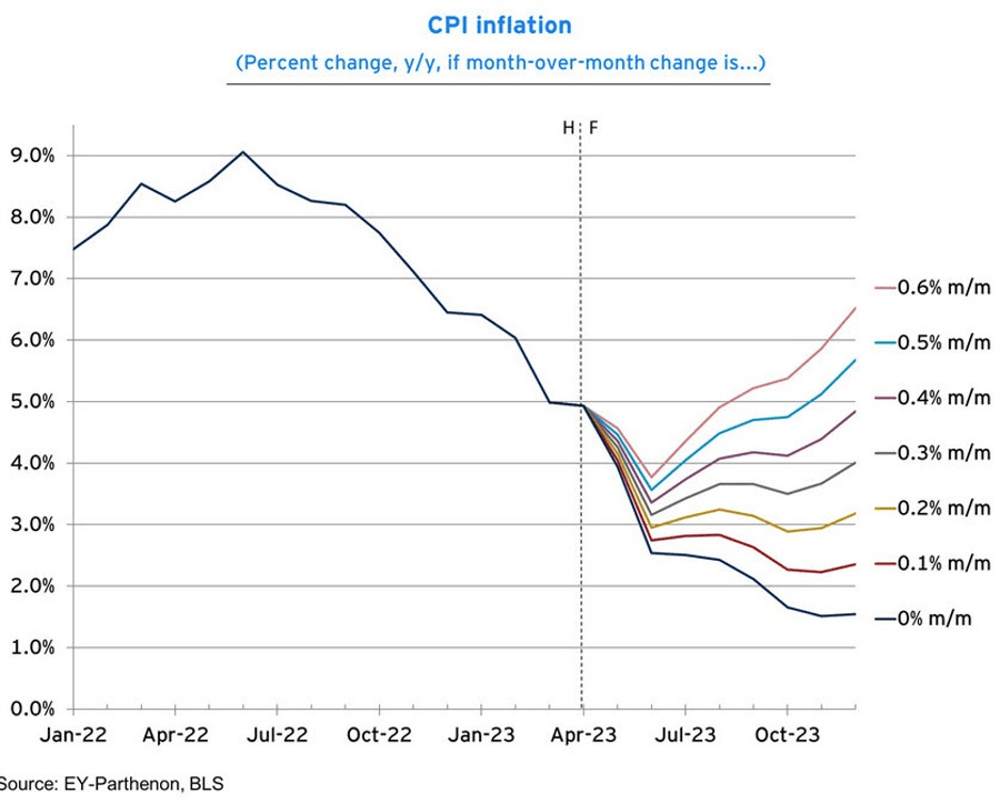 事实上,不管美国的CPI月率如何,未来两个月该数据可能会急剧下降,如下图所示。