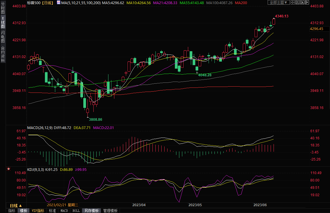 截止周一收盘,普500指数攀升0.93%,收于4338.93点。纳斯达克指数.上涨1.53%,收报13461.92点。