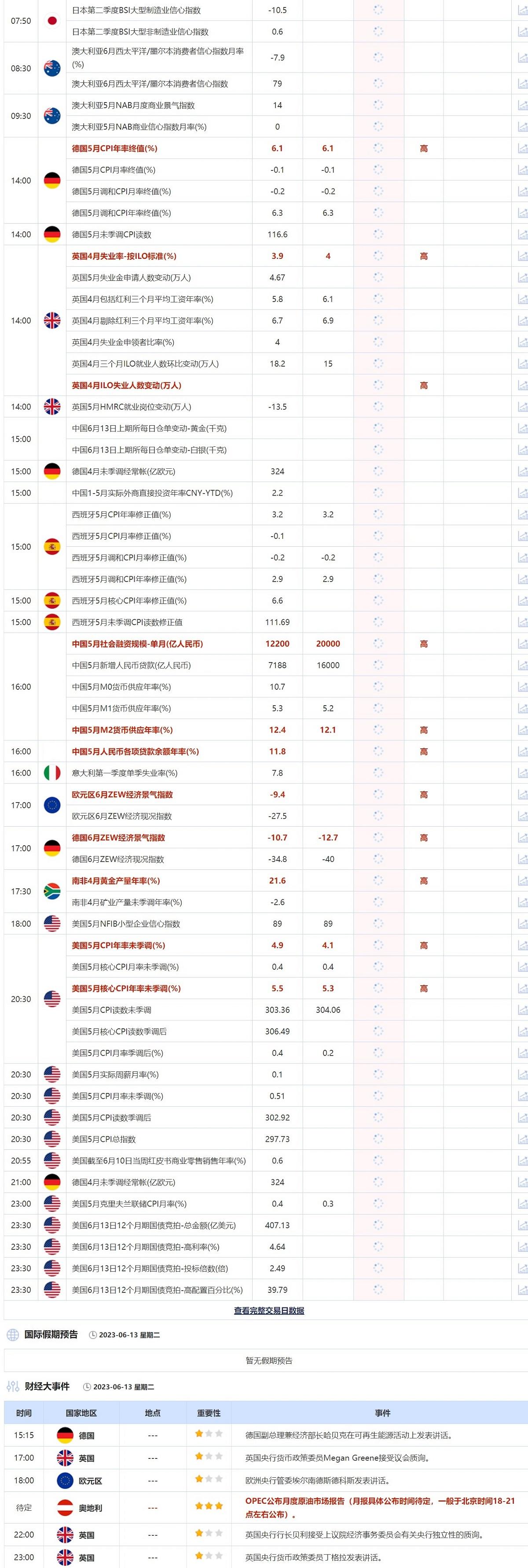 标题:6月13日重点数据和大事件前瞻