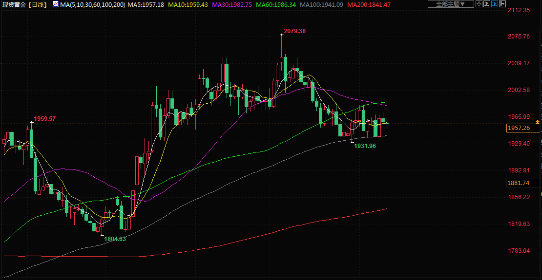 商品收盘情况:美国期金收低0.4%,报1969.70美元。