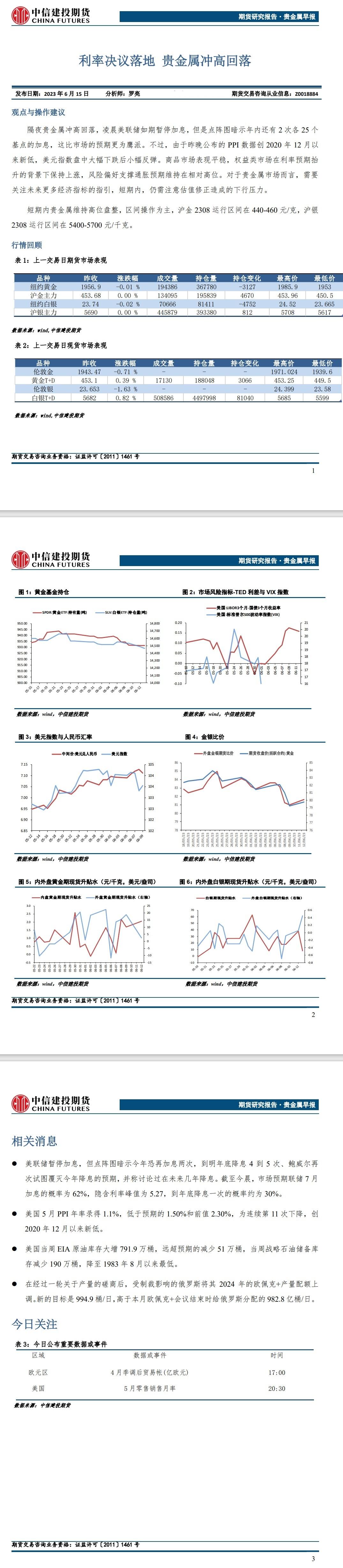 标题:中信建投期货6月15日贵金属日报:利率决议落地 贵金属冲高回落