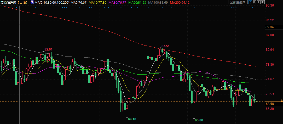 美原油交投于68.48美元/桶附近;油价周三收跌,就在数据显示美国原油库存意外大幅增加数小时后,美联储预计今年会有更多的加息,增加了市场对需求的担忧。