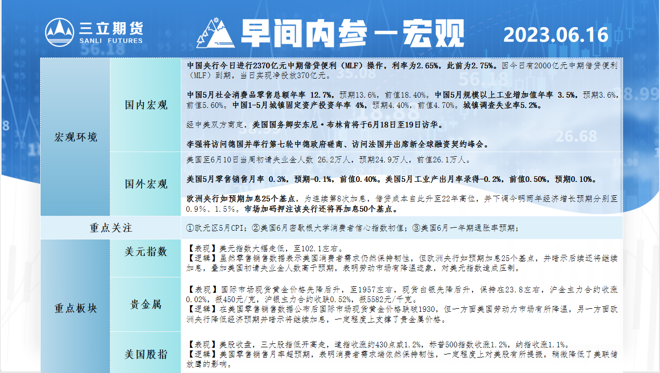 标题:三立期货6月16日早间内参——宏观