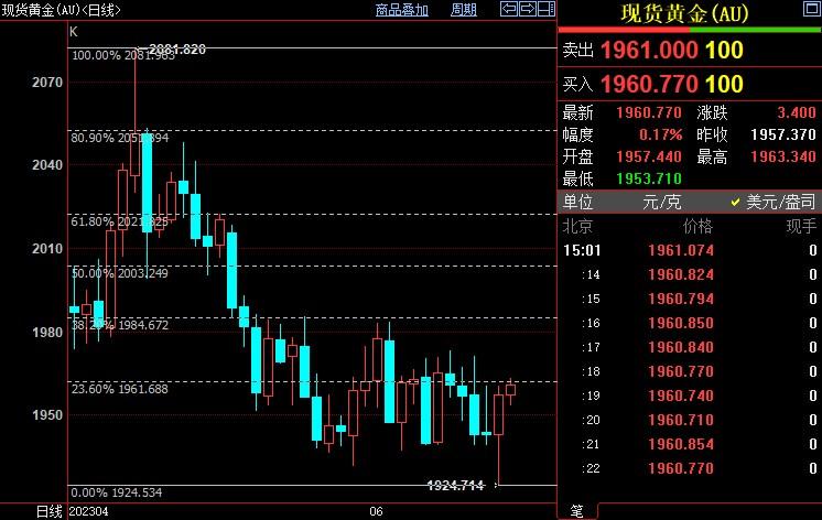 汇通财经APP讯——周五(6月16日),国际金价延续上个交易日反弹势头,但涨势有所收敛,交易商权衡近期美国经济数据和美联储关于进一步收紧货币政策的鹰派信号。技术上看,金价若站上1962美元,后市有望上摸1985美元。