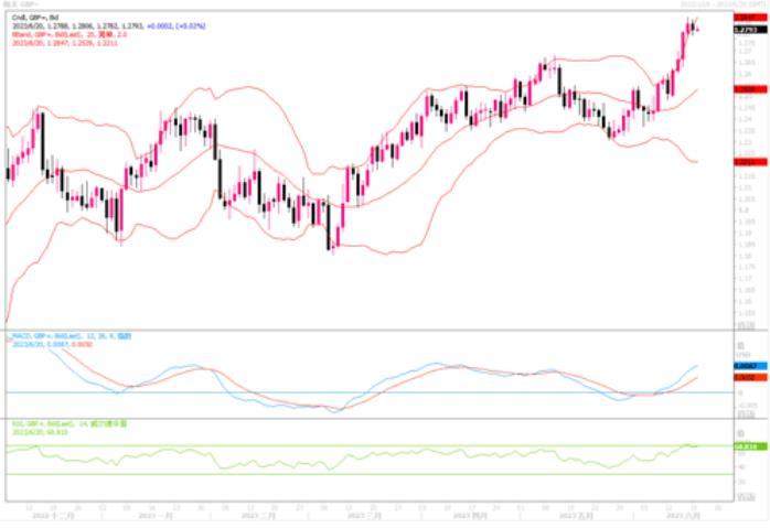 英镑兑美元将继续上涨,至少在短期内如此。最新的英国通胀数据将于周三公布。经济学家预计,整体消费者物价指数(CPI)同比增幅将从4月的8.7%略微降至8.5%。不过,他们预计核心CPI涨幅将稳定在6.8%。英国央行还将于周四公布利率决策,投资者和经济学家预测,决策者将宣布加息25个基点,至4.75%。总之,近期宏观面应该是能给到英镑继续冲高的理由。英镑/美元短线防微幅调整,整体仍偏上行。