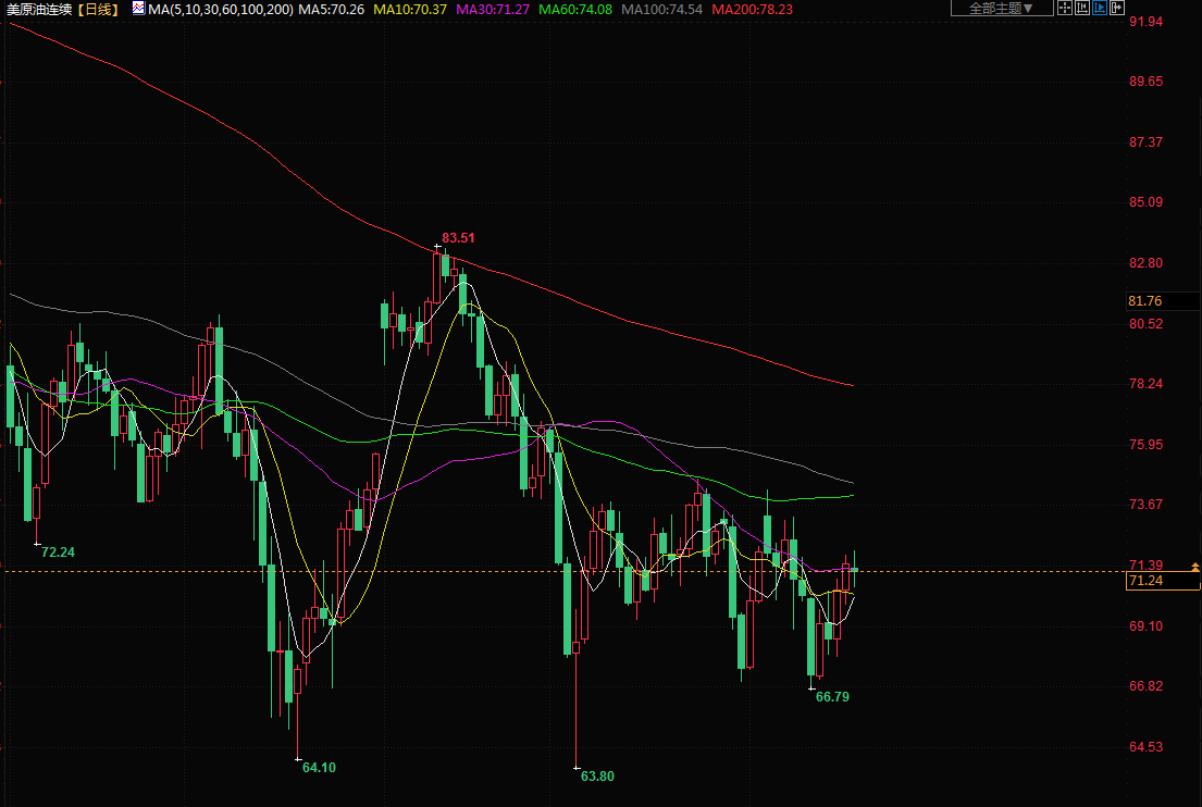 布伦特原油下跌0.68%,结算价报每桶76.09美元。美国原油期货下跌0.9%,报每桶71.17美元。
