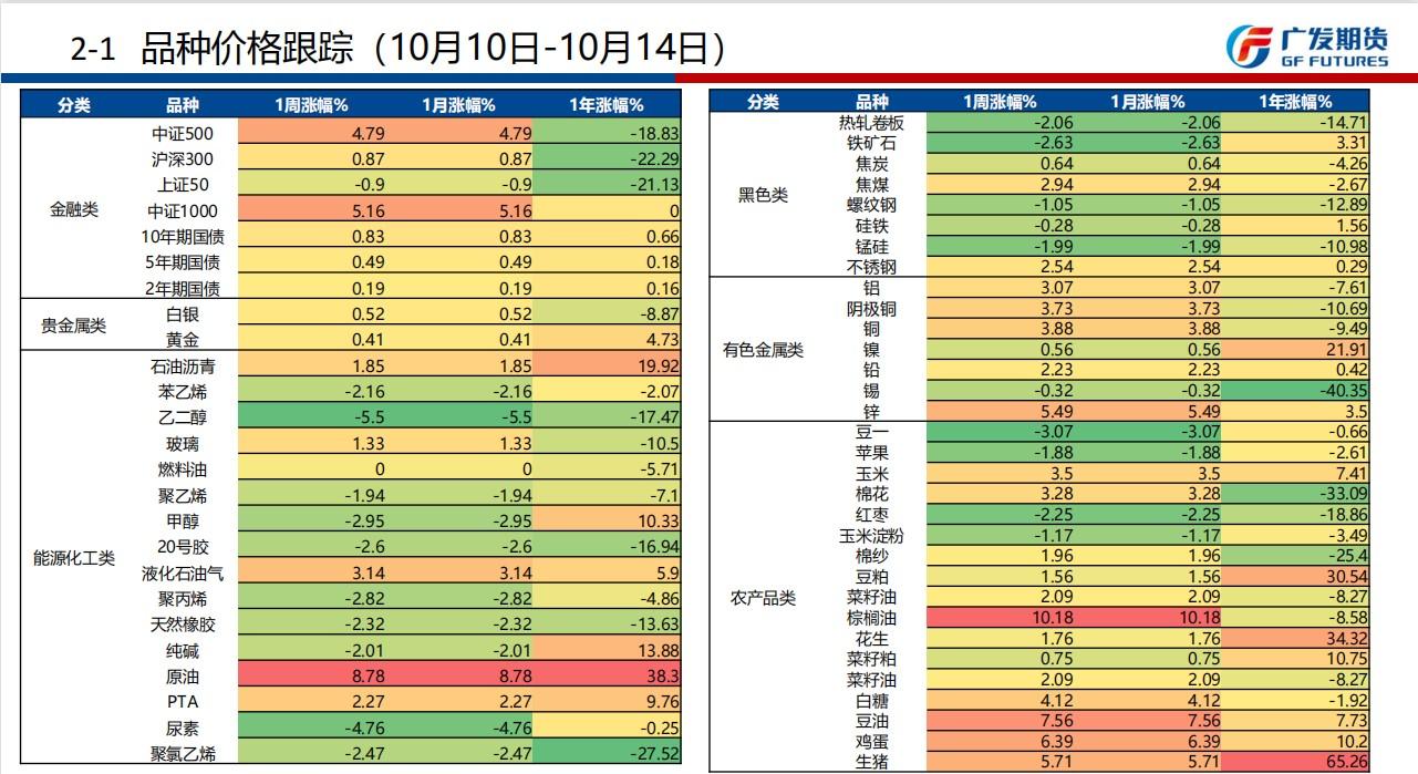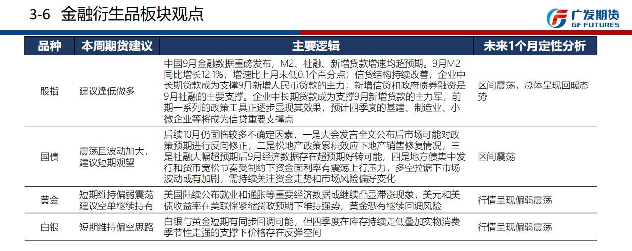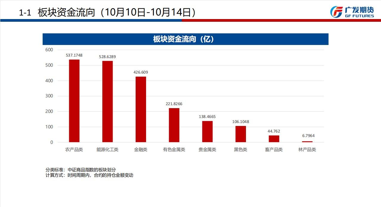 广发期货发布周报观点汇总(10月10日-10月14日当周),就当周品种资金流向和品种价格跟踪做了回顾,并对农产品、黑色系、能源化工、特殊商品、金融衍生品给出基本面分析以及本周操作建议,并对未来一个月进行定性分析。