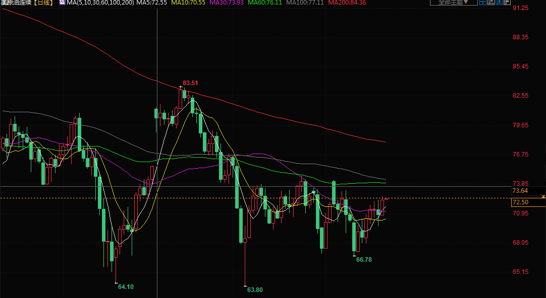 美原油交投于72.51美元/桶附近;油价周三上涨超2%,跟随美国玉米和大豆期货飙升至数月高位的涨势,这增加了人们对全球谷物供应短缺可能会降低生物燃料混合比例并增加石油需求的预期。
