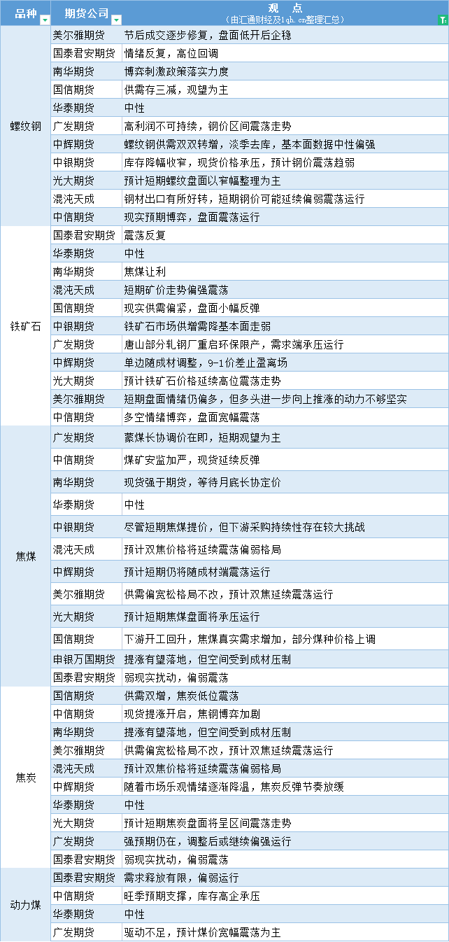 期货公司观点汇总一张图:6月27日黑色系(螺纹钢、焦煤、焦炭、铁矿石、动力煤等)