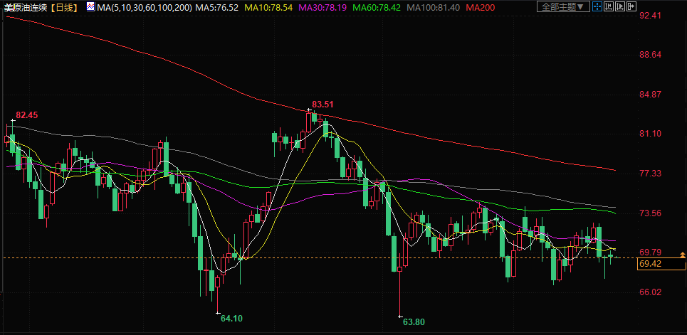 美原油交投于69.47美元/桶附近;油价周一在震荡交投中小幅上涨,投资者在对全球需求增长的担忧与未来供应干扰之间寻求平衡,而俄罗斯的政治不稳定可能会加剧供应干扰。