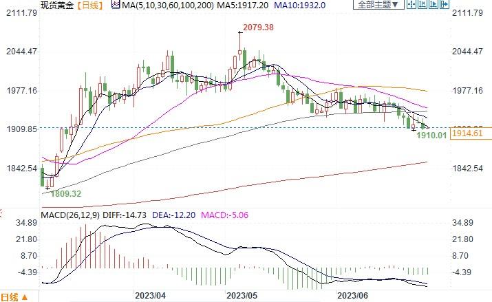 受此影响,金价周二接近3月份以来的最低水平,目前交投于1914美元附近。