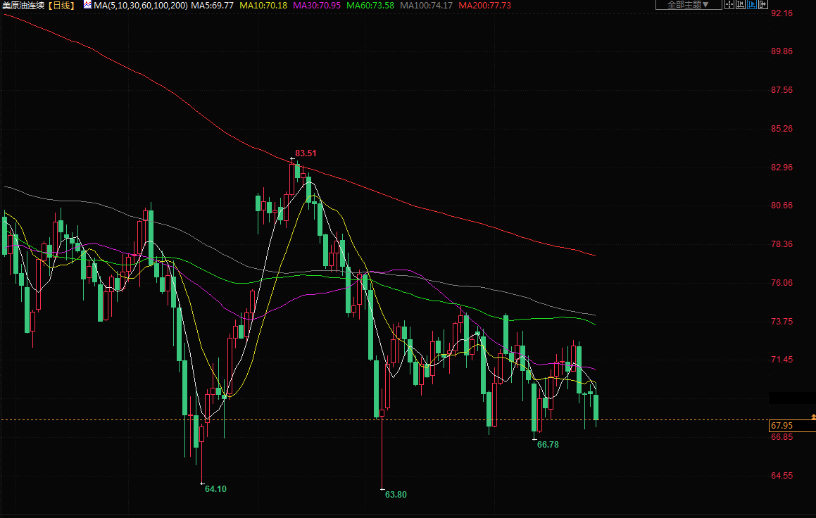 布伦特原油期货结算价下跌2.6%,报每桶72.26美元。美国原油期货下跌2.4%,报每桶67.70美元。