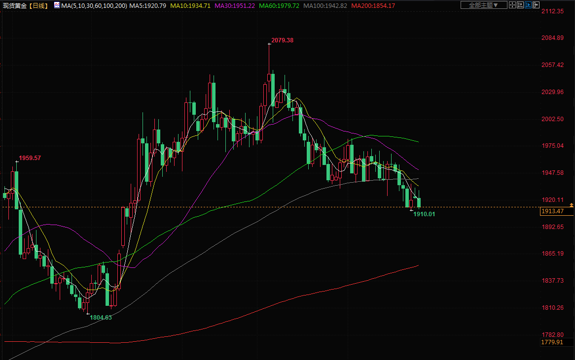 商品收盘情况:美国期金下跌0.5%,结算价报每盎司1923.80美元。