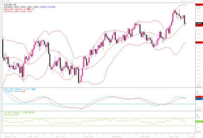 欧元兑美元微微下跌0.35%,至1.0921。周三当天,鲍威尔与英国央行总裁贝利、欧洲央行总裁拉加德和日本央行总裁植田和男一起在欧洲央行的会议上发言。他指出,今年可能加息两次,不排除在将于7月25-26日举行的下一次政策会议上加息的可能性。此外,鲍威尔还表示,他认为通胀在2025年前都不会回落至美联储2%的目标。言外之意,美元的高利率将维持相当长一段时间,冀望美联储将会降息的预期进一步遭到挫击。拉加德表示,欧洲央行仍未看到足够的证据表明核心通胀已经走上了下行道路。欧洲央行管理委员会委员暨法国央行总裁维勒鲁瓦德加洛表示,欧洲央行将利率保持在高位的时间比实际利率水平更重要,但利率已接近推动通胀回到2%目标所需的水平。换言之,欧央行继续加息的空间似乎也已不多了。日线图上,欧元/美元继续驻留在1.09楼上,技术指标方面似有顶背离迹象。近期须留意1.09水位的支撑性,若跌穿,须当防范欧元回落幅度的加大。
