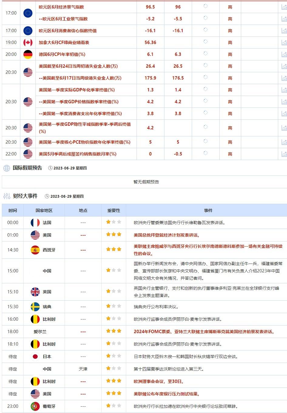 5.法国外贸银行:英国利率上升损害经济,料英镑走弱;法国外贸银行分析师称,英镑可能在下半年走软,因近期利率大幅上升对经济造成影响。他们表示:“基准利率的持续上升只会加剧经济活动的恶化,尤其是房地产市场。”他们还认为,英国央行加息的幅度可能不会达到市场预期,这将进一步打压英镑。英镑自5月以来大幅升值,自年初以来一直保持相对稳定,这是由于高通胀导致英国央行进一步收紧货币政策的预期所推动的。他们预计年底前欧元兑英镑将从目前的0.8597升至0.8800
