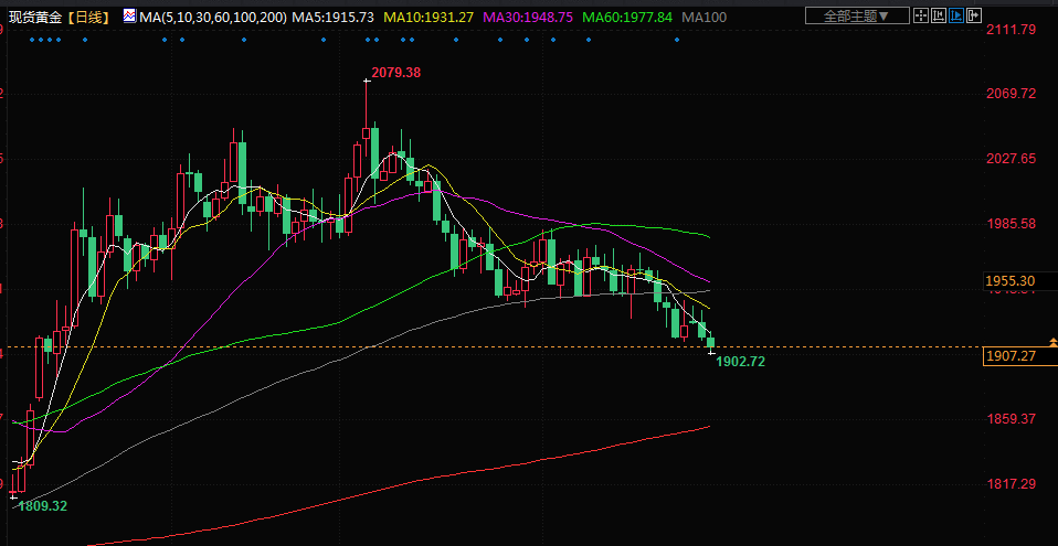 白银下跌0.3%,至每盎司22.81美元;铂金下挫1.4%,报912.20美元,稍早触及八个月最低;钯金急挫3.7%,触及1248.06美元的四年半以来最低。