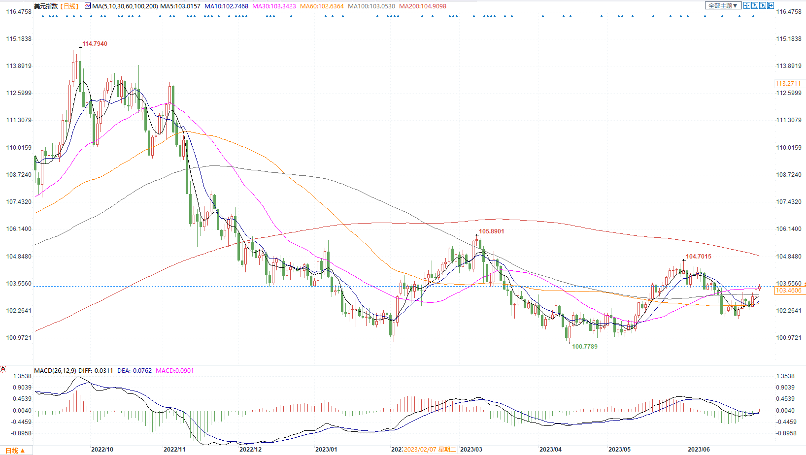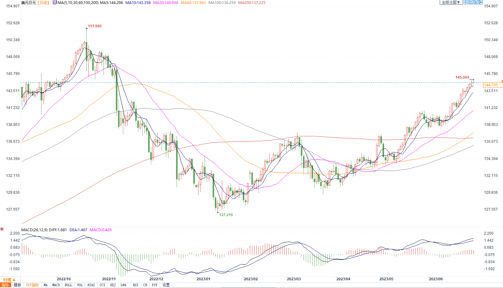 美元兑日元日图走势