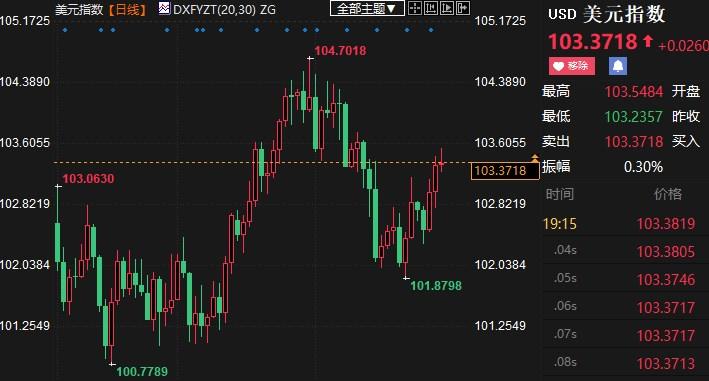 美元指数本周上涨0.53%至103.409,盘中创逾两周新高至103.548。