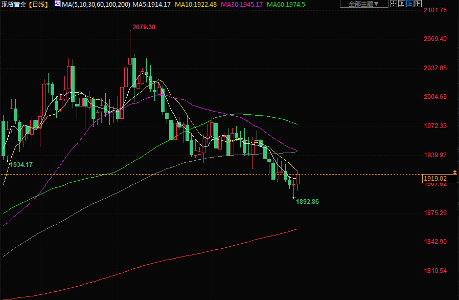 二季度金价下跌了2.5%,从5月份因对美国银行业健康状况感到紧张而创下接近历史高点2072美元跌至周四的1,900美元以下。