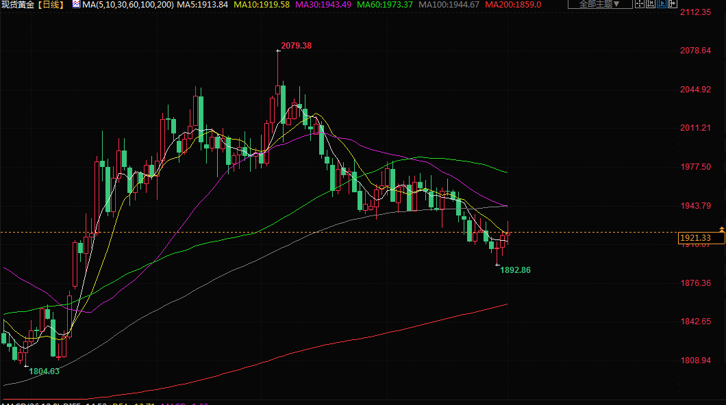 金价周一上涨,美元和美债收益率因经济数据疲软而回落,使人们对美联储是否可能坚持其鹰派政策前景产生怀疑。金价在4月至6月的季度中累计下跌2.5%。OANDA的高级市场分析师Edward Moya称:“黄金可能已经在1900左右找到了一个舒适价位。这种水平上出现了一些补仓......上周市场似乎在慢慢消化美联储更进一步加息的预期,但未来的数据或表明这可能不会发生,可能真的只会再加息一次。”