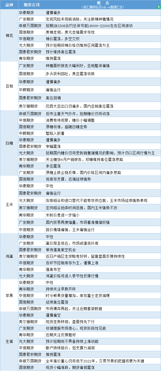 期货公司观点汇总一张图:7月6日农产品(棉花、豆粕、白糖、玉米、鸡蛋、生猪等)