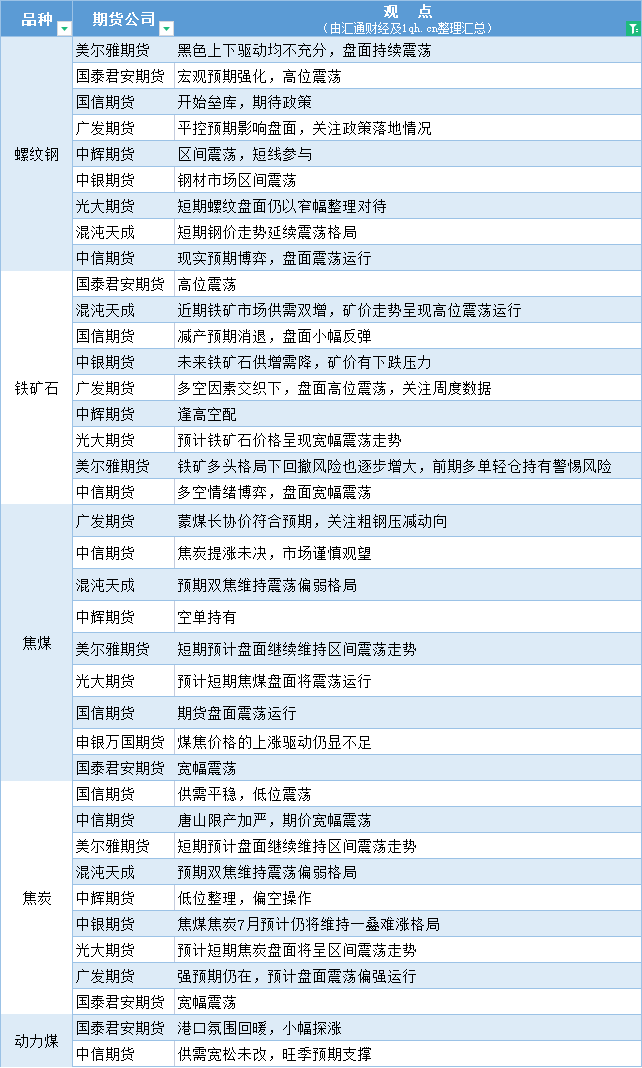 标题:期货公司观点汇总一张图:7月6日黑色系(螺纹钢、焦煤、焦炭、铁矿石、动力煤等)