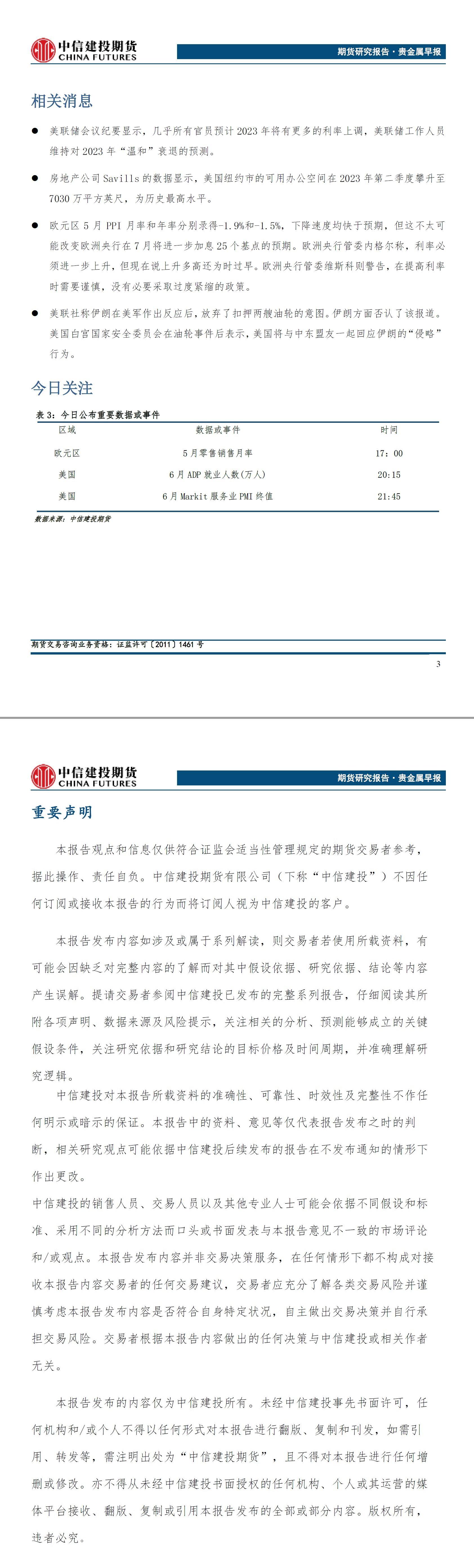 标题:中信建投期货7月6日贵金属早报