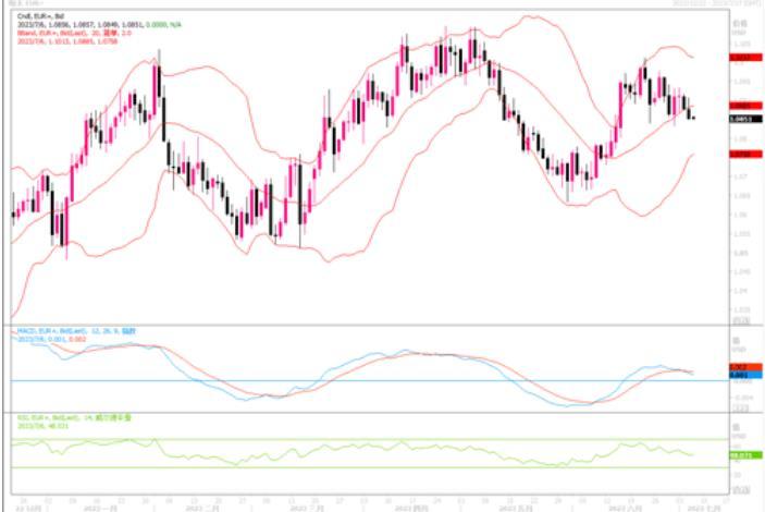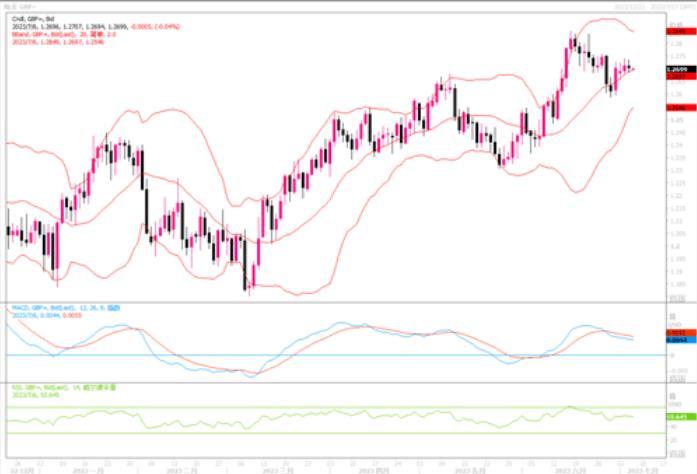 欧元兑美元继续下跌0.23%,收盘于1.0854水平。此前美联储公布的6月政策会议记录强化了市场对7月底再次加息的预期。纪要显示,上月几乎所有美联储决策者都同意保持利率不变,大多数决策者预计最终需要进一步收紧政策,这一观点推动美债收益率攀升,令美元扩大涨幅。而欧元区方面,其第二季度末经济陷入停止,制造业订单急剧下降,商业信心也有所下降,降至今年迄今的最低水平。这不得不令投资者怀疑,目前机械式的调升利率,会否付出牺牲未来经济发展前景的代价。日线图上,欧元连续两日走阴,兑美元汇价重新回落20日均线下方,MACD信号线形成死叉,显示欧元有走弱的趋向。下方需密切留意1.0800(近期震荡区间的底沿)的支撑,若跌破,欧元/美元将加深下跌的幅度。