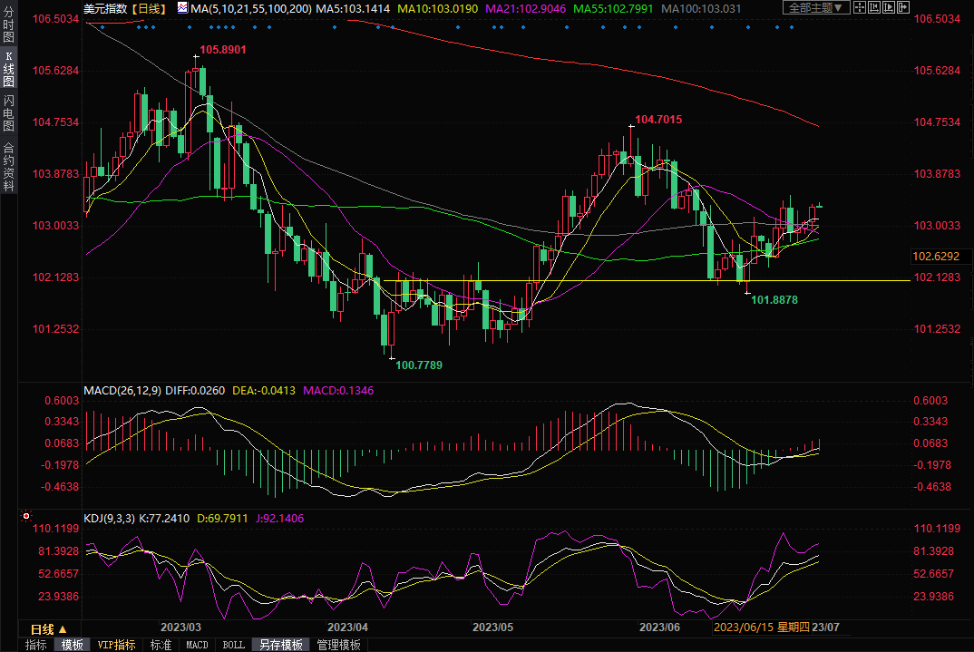 美元指数三连阳,因美联储会议记录强化了进一步加息的预期