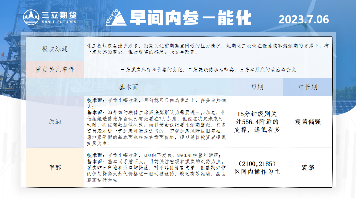 三立期货早间内参显示,化工板块夜盘涨少跌多,短期关注前期高点附近的压力情况,短期化工板块在低估值和强预期的支撑下,有定反弹的需求,但弱现实的格局并未发生改变。原油短线逢低看多,中线震荡偏强。