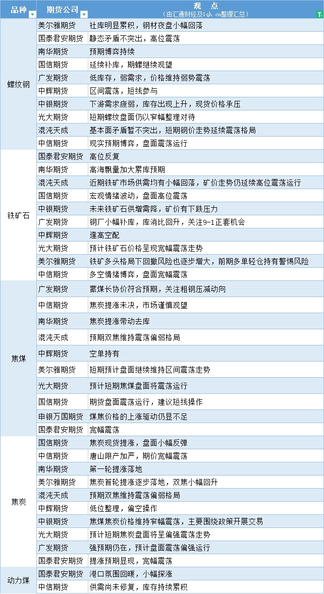标题:期货公司观点汇总一张图:7月7日黑色系(螺纹钢、焦煤、焦炭、铁矿石、动力煤等)