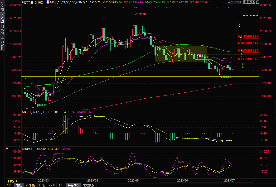 整体来看,虽然美元的回落和避险情绪仍给金价提供一些支撑,但美国就业市场的强劲表现不仅强化了7月份加息预期,还提高了11月再度加息的预期,降低了经济衰退预期,美债收益率强势上涨,全球多数央行至少还有一次加息需求,这令金价短线面临进一步下行风险,如果跌破1900关口,短线可能会试探3月15日低点1885.66附近支撑,中线可能会跌向200日均线1865附近。上方留意21日均线1930附近阻力,若能顶破该阻力,则增加短线看涨信号。北京时间10:15,