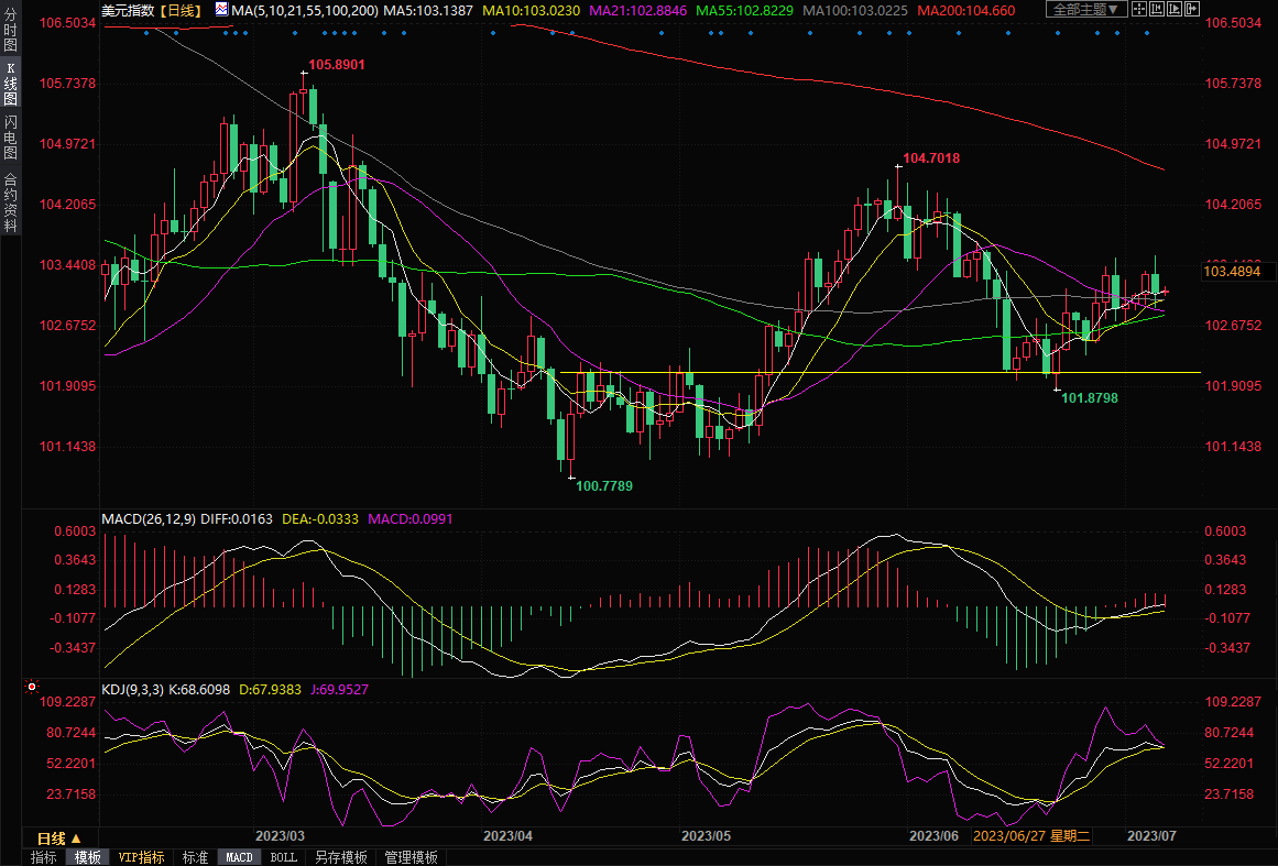 美元指数美元指数一度创近三周新高至103.58,但收盘下跌0.23%,收报103.12附近。周四亚市,汇价窄幅震荡,目前交投于103.13附近。