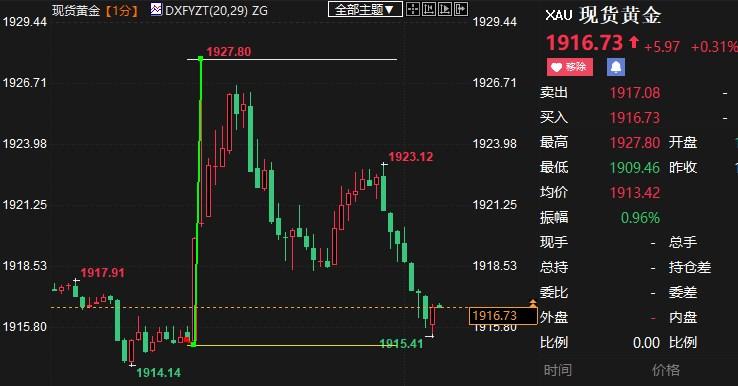 现货黄金短线跳涨逾12美元。